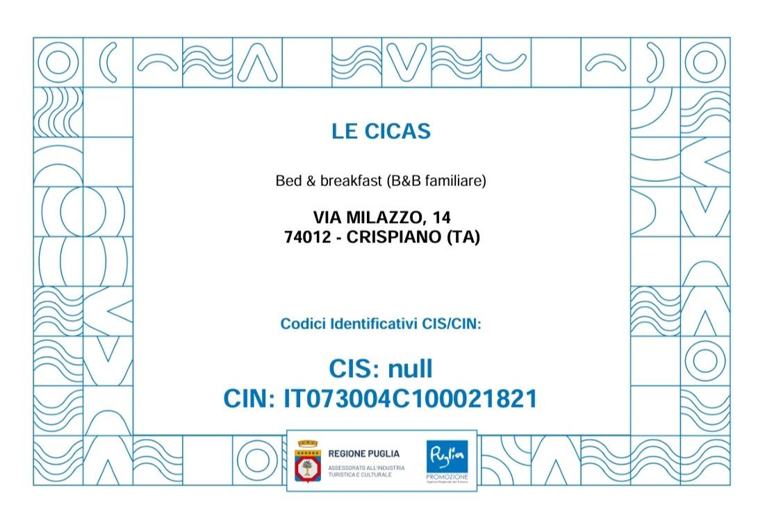 Il B&B “Le Cicas” è posto in un’area tranquilla e lontana dal traffico a 100 metri dalla centralissima Piazza Madonna Della Neve.
